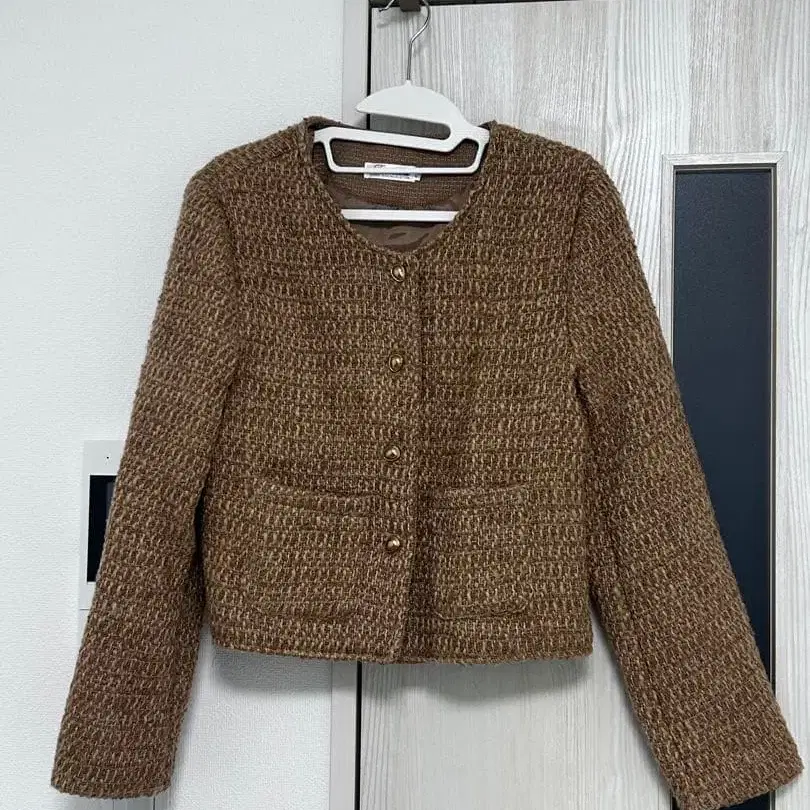 깔끔한 자켓입니다! 브라운이지만 빛의 각도에 따라 약간 금색, 노란색으로 보이기도 합니다 ☺︎
