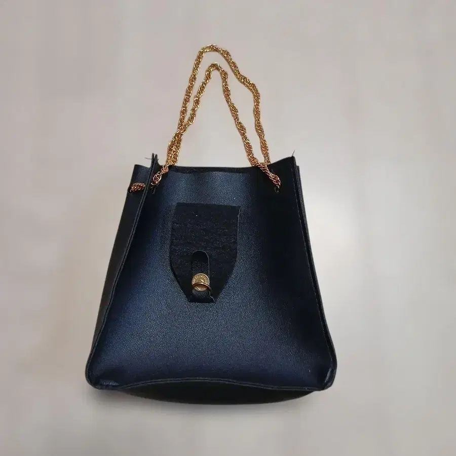 네이비 합성 피혁 핸드백 중형