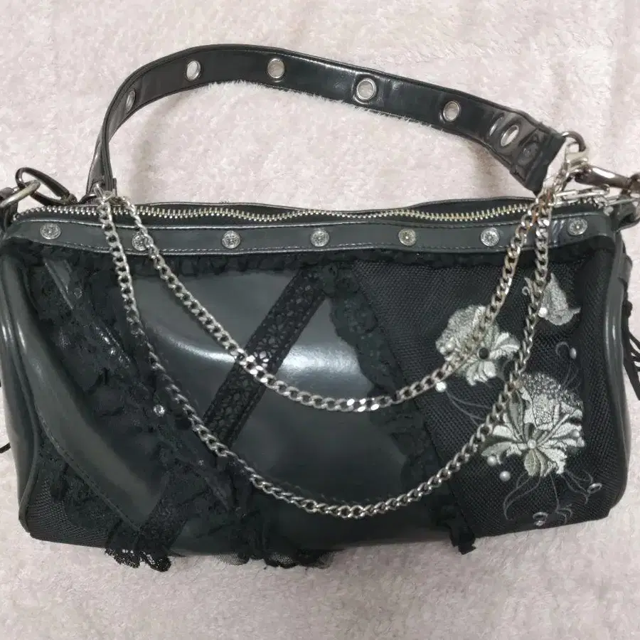 그레이 크리스탈 장식 숄더백