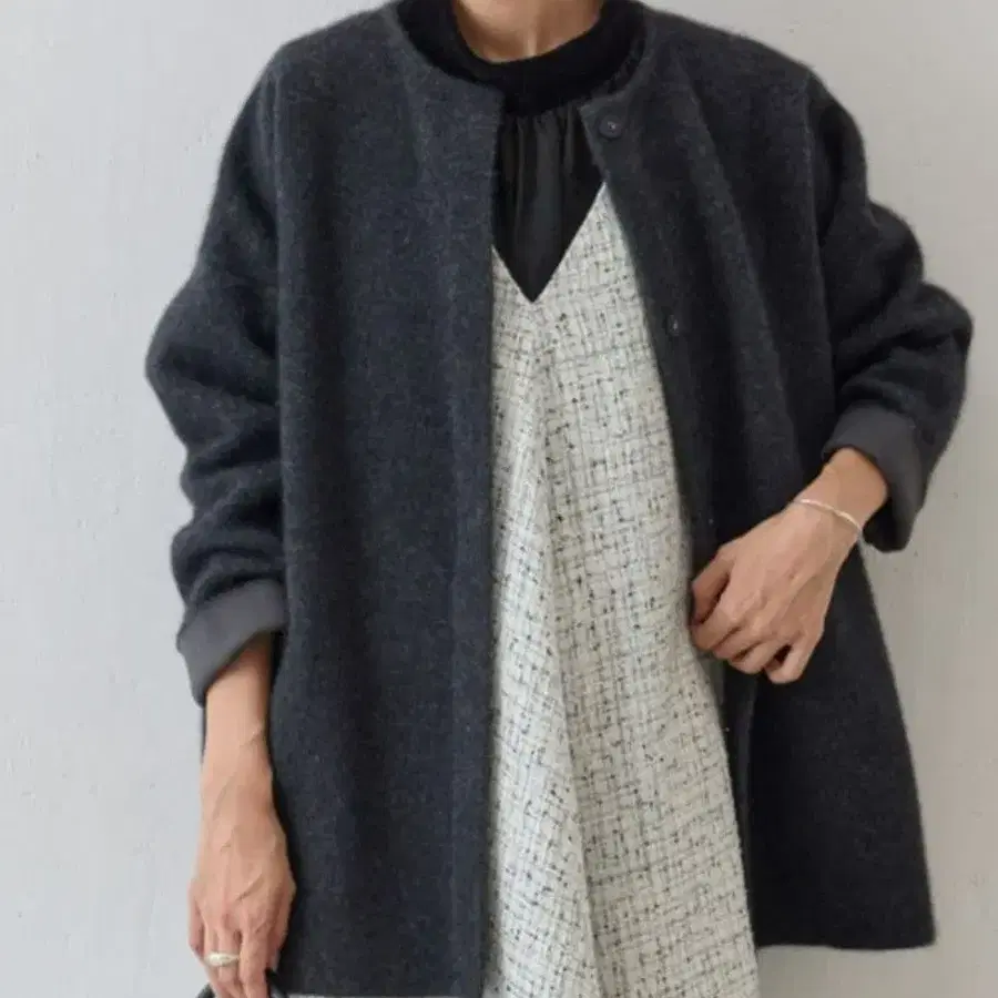 • SIMPLICITE 니트 트위드 자켓 노카라 자켓 베이크루즈