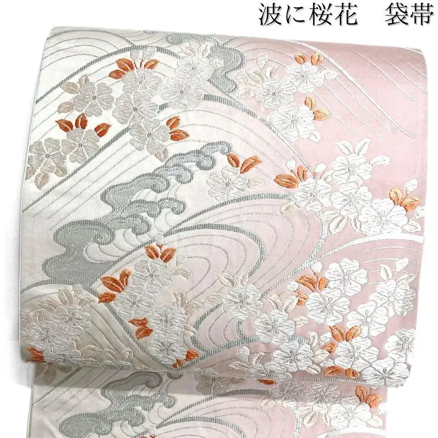 물결과 벚꽃 무늬 후쿠로 오비 기모노 012w