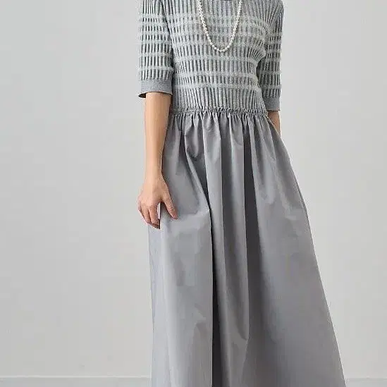 아우터 안에 입어도 부해 보이지 않는 5부 소매의 도킹 원피스입니다.