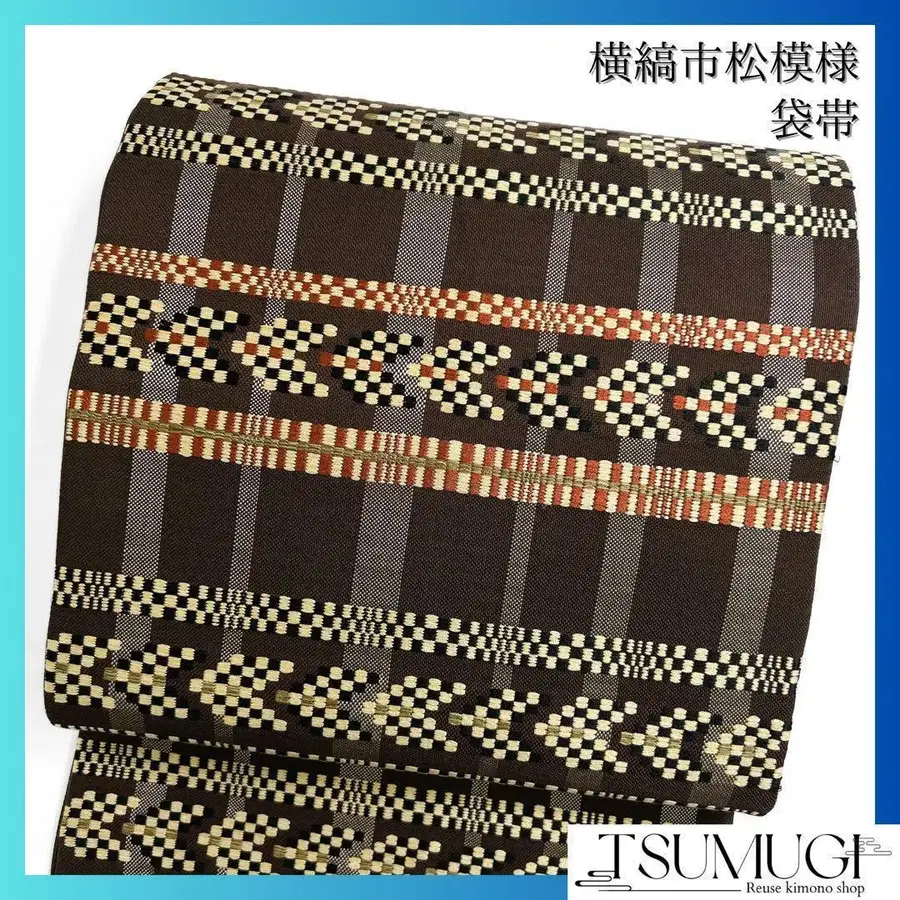 후쿠로 오비 가로 줄무늬 체크 패턴 기모노 044w o
