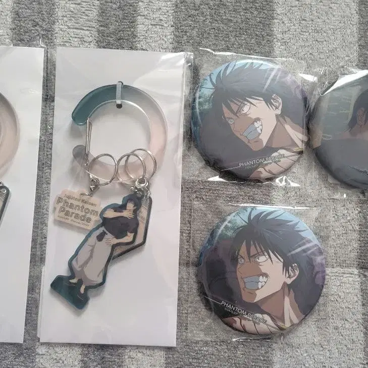 주술회전 팬텀 퍼레이드 팬파레 복권 회옥 옥절 카라비너 아크릴 키링 캔뱃지 후시구로 진 세트입니다.