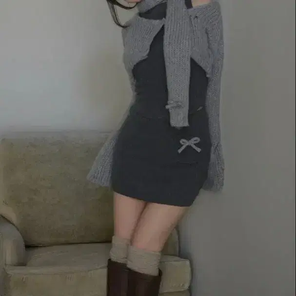 Andmary Zoff 머플러 니트 세트 미개봉 새상품 그레이