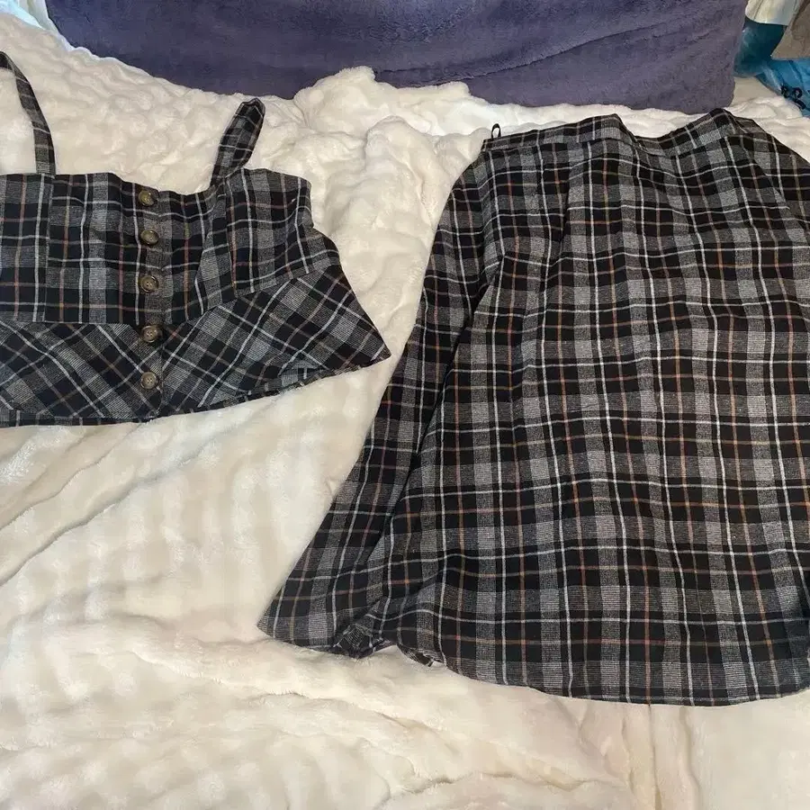 쿠레트 상하의 셋업 체크 뷔스티에 스커트 4L
