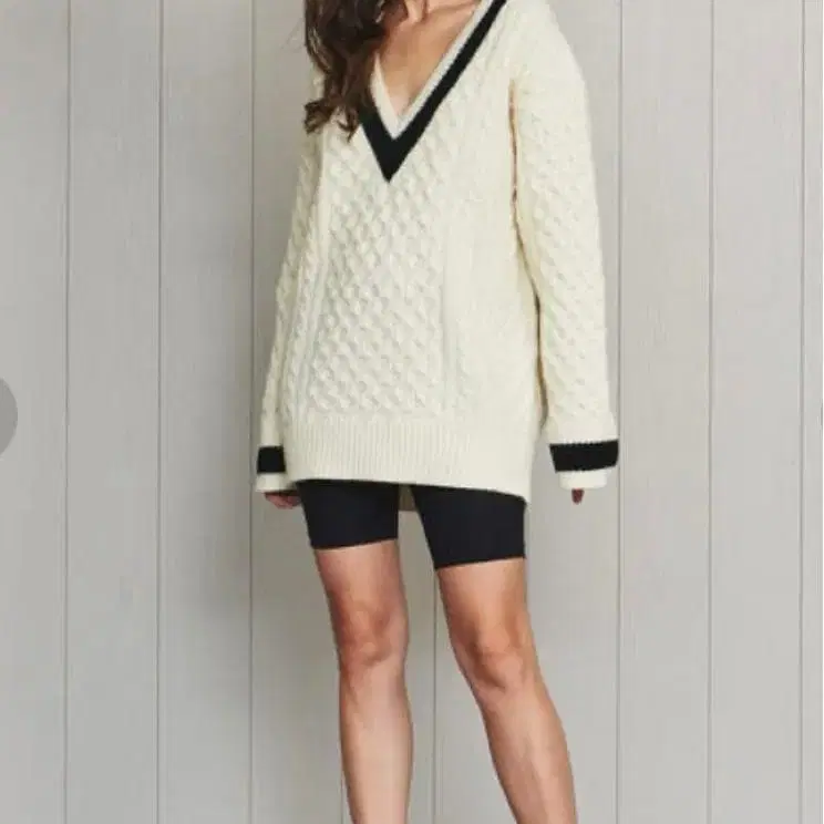 자동 번역되었어요. 원문보기H BEAUTY&YOUTH 아이보리 오버 사이즈 V넥 케이블 짜임 스웨터