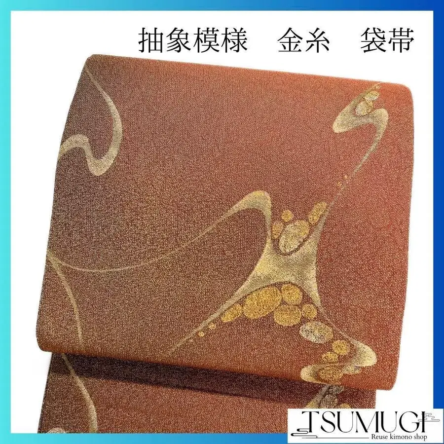 추상 무늬 은사 금실 후쿠로 오비 기모노 092w p
