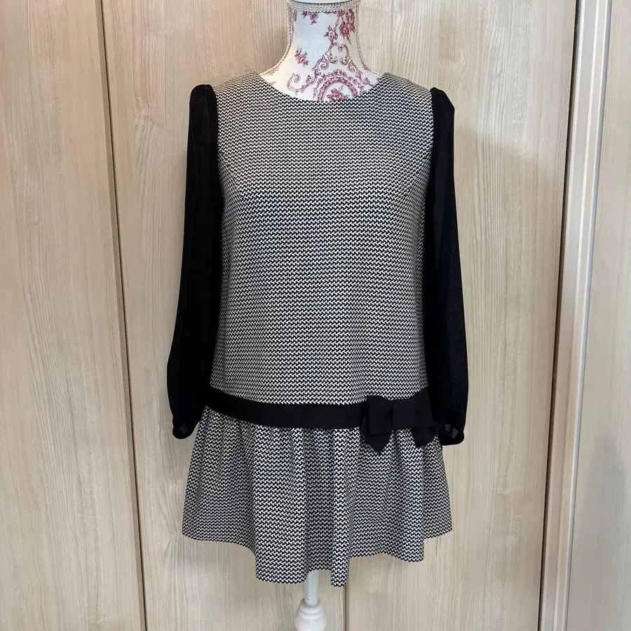 허리 부분의 리본과 플레어가 매우 귀여운 디자인입니다. A라인으로 퍼지는 귀여운 튜닉입니다.