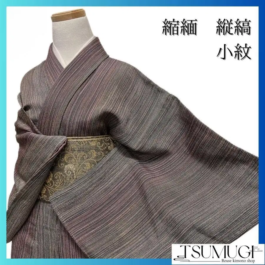 미착용 크레이프 원단 세로 줄무늬 다크톤 코몬 기모노 105a p