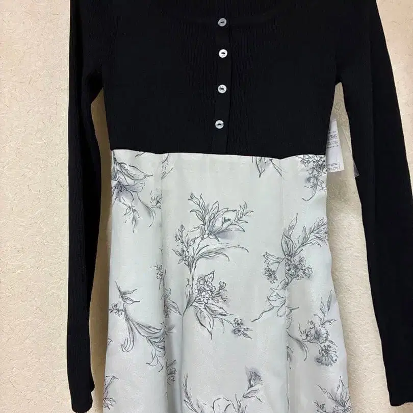 백 레이스업 버튼 니트 도킹 꽃무늬 원피스 MERCURYDUO
