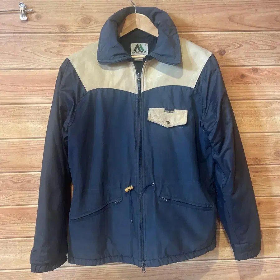 MONITEUR 가죽 절개 나일론 자켓 네이비 x 베이지 L 상당
