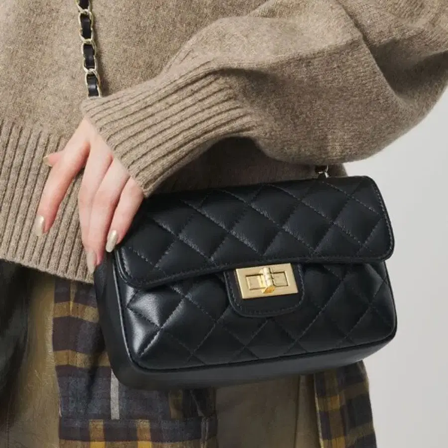 AULENTTI 가죽 퀼팅 체인 숄더백 black