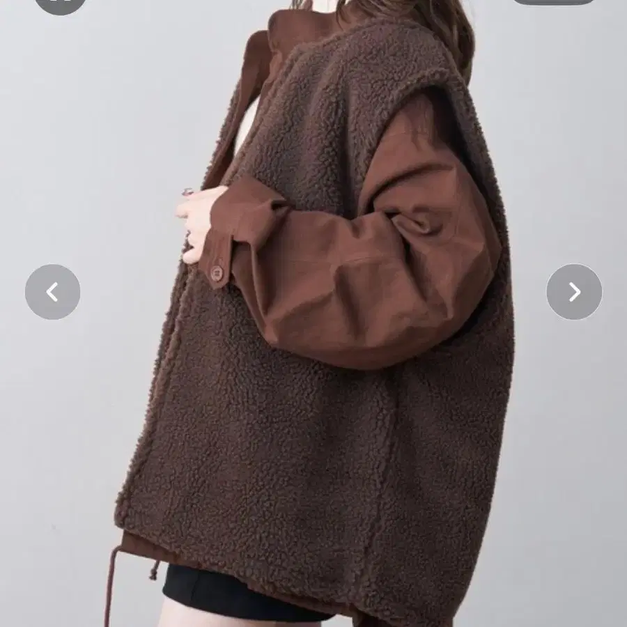 Chico 브라운 스탠드 카라 베스트 부착 자켓