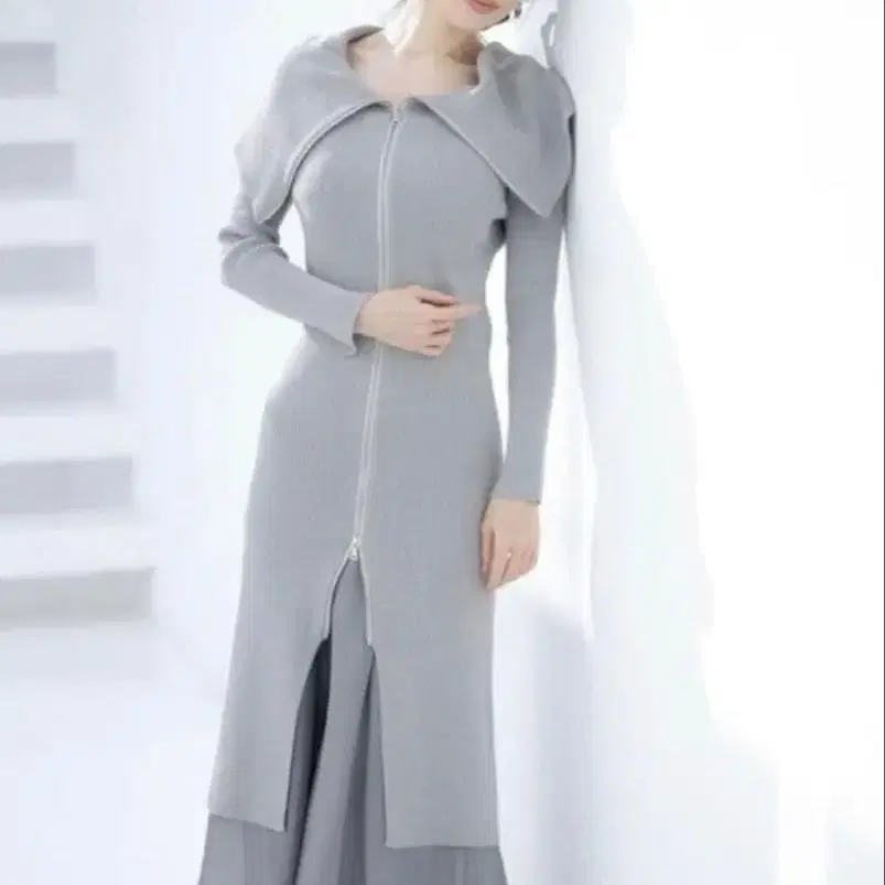 머큐리 듀오 스커트 세트 풀 집업 니트 원피스 그레이
