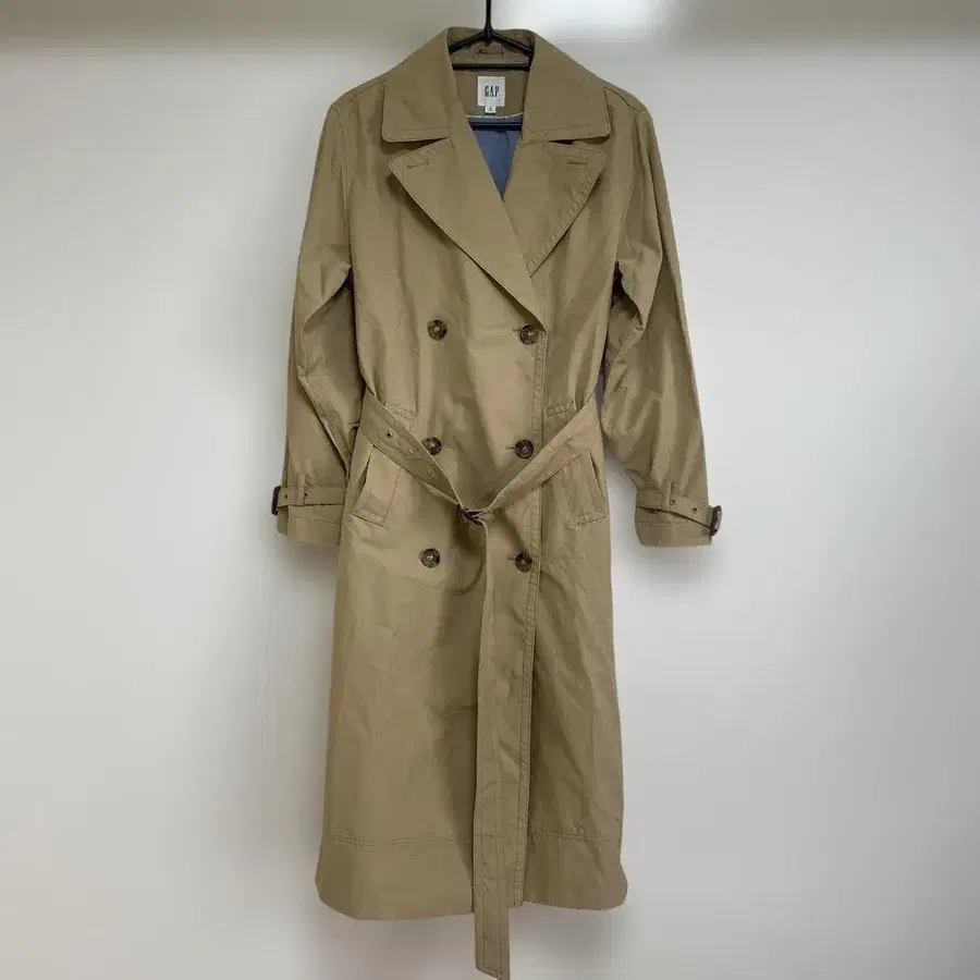 GAP의 여성용 트렌치코트입니다. 스테디셀러인 베이지 색상으로, 유행에 좌우되지 않고 오래도록 애용하실 수 있는 아이템입니다. 더블 브레스트 사양이며, 허리 벨트를 조여 실루엣에 변화를 주어 여성스러운 라인을 연출합니다. 안감은 산뜻한 블루 색상으로, 은은한 악센트가 됩니다. 소매에는 벨트가 있어 디테일까지 세심한 제작이 느껴집니다. 가벼운 착용감으로 봄이나 가을 환절기에 활약할 아이템입니다. 캐주얼부터 포멀한 스타일까지 폭넓은 코디네이트에 잘 어울리며, 출퇴근이나 외출 시에도 추천합니다.