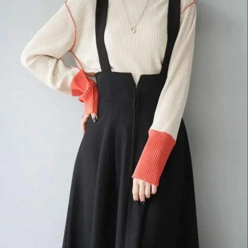 Lumier 서스펜더 부착 스커트 셋업