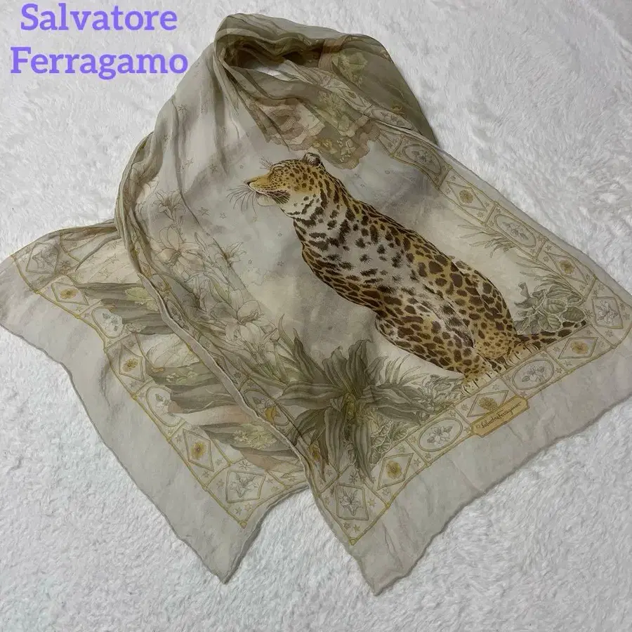 새상품급 살바토레 페라가모 쉬폰 스카프 호랑이 타이거 시어 스톨