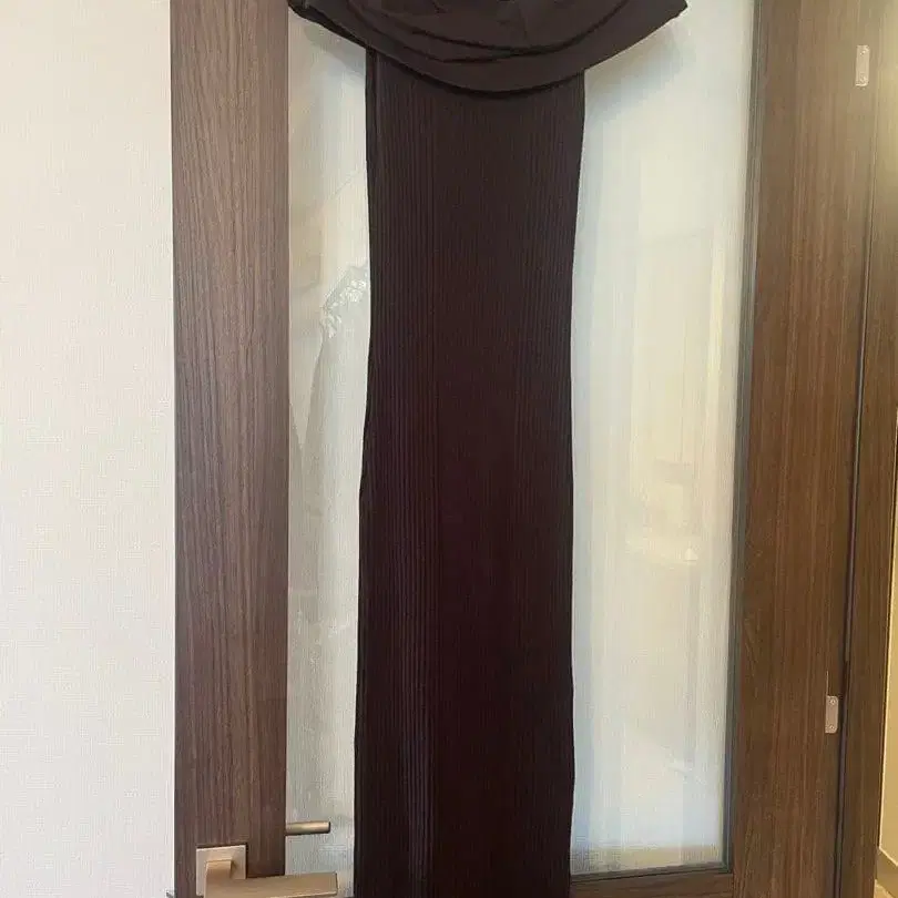 Her lip to 다크 브라운 니트 원피스 오프숄더