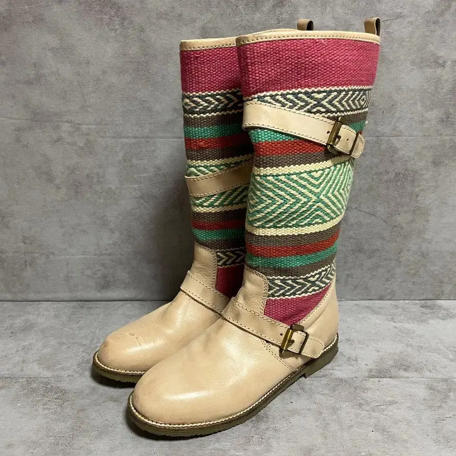 롱 부츠 (36) 엔지니어 부츠 베이지 에스닉 벨트