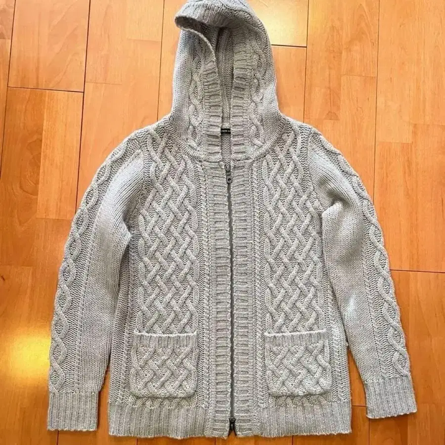 [새상품급] 후드 부착 니트 가디건 (연한 그레이)