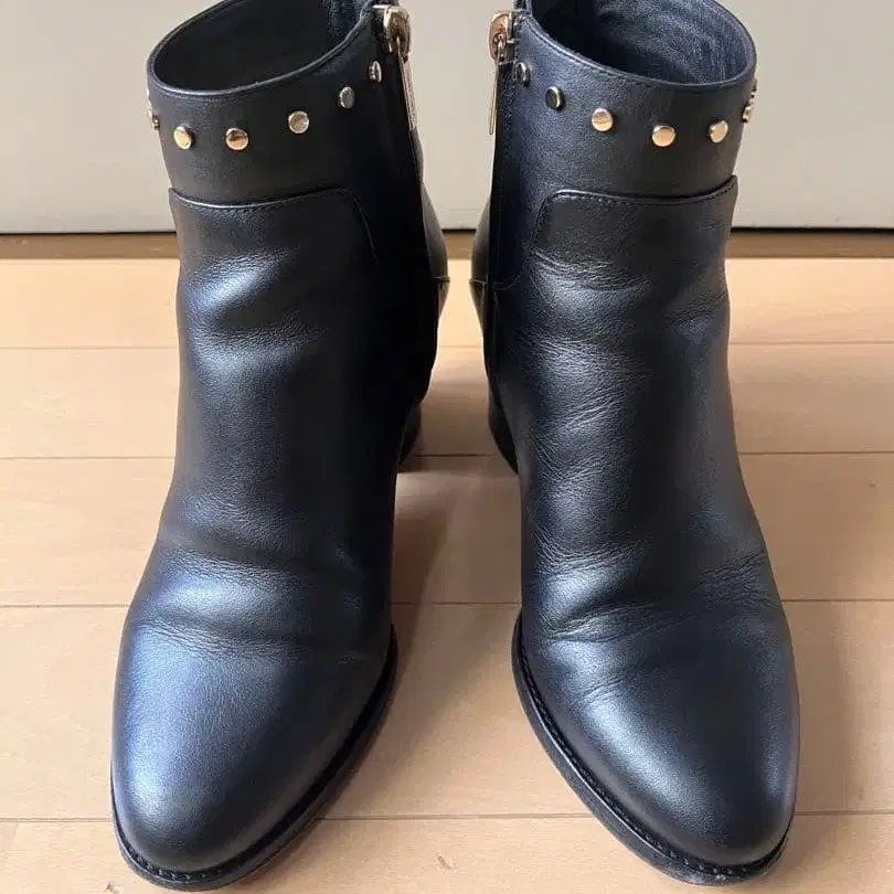 지미추 스터드 장식 블랙 가죽 부티