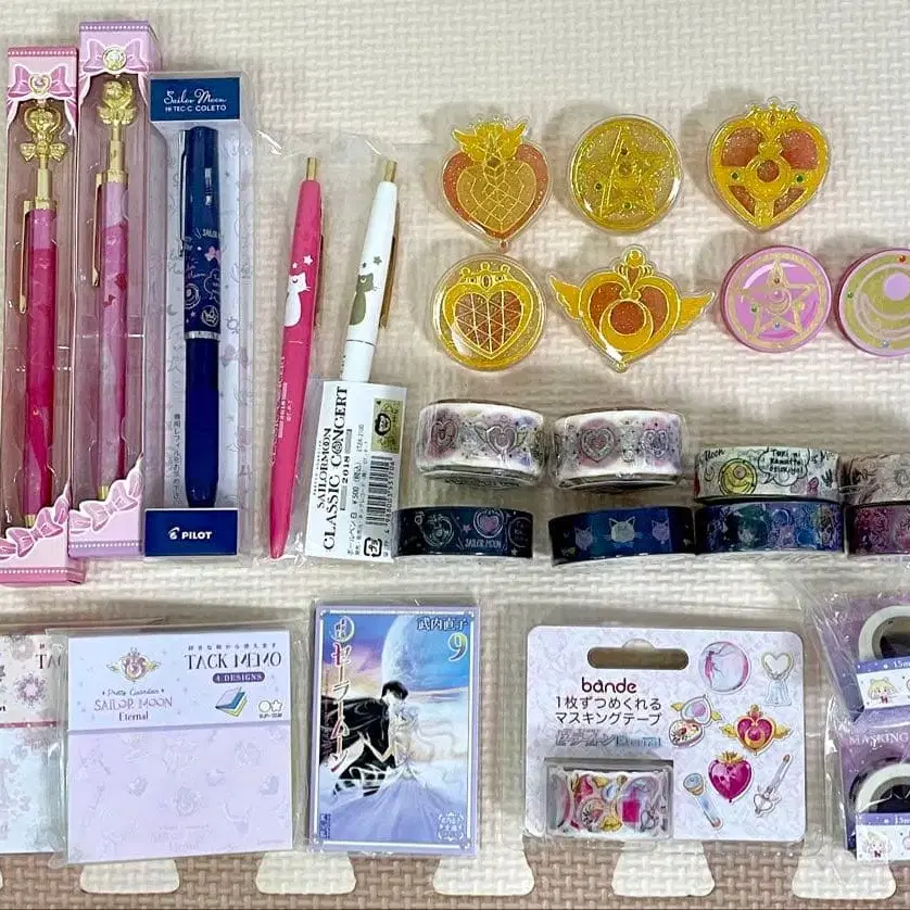 세일러문 문구 세트 볼펜, 마스킹 테이프 포스트잇, 클립 2번째 사진에서 마스킹 테이프 패턴을 확인할 수 있습니다. 불분명한 점 등이 있다면 댓글로 부탁드립니다. 기타 세일러문 굿즈 다수 판매 중. 판매 예정인 상품도 아직 많습니다.