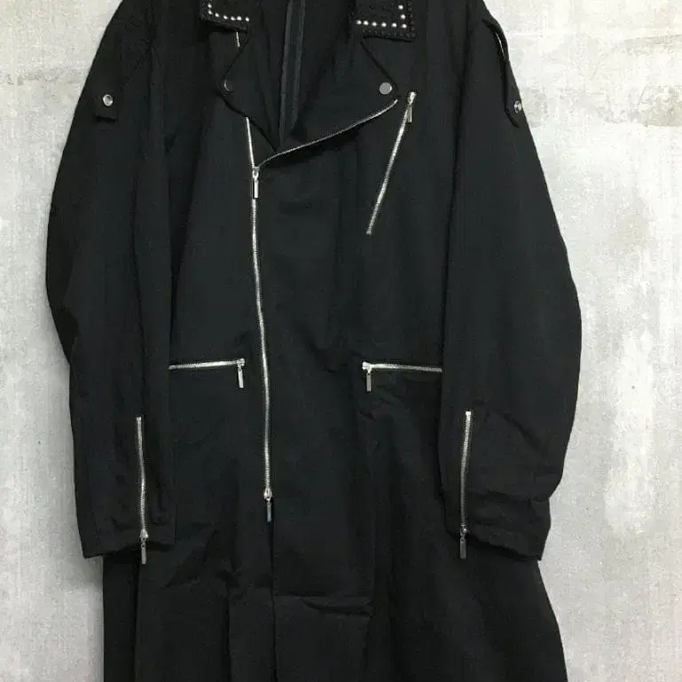 터크 스터드 장식 울 개버 라이더스 코트 블랙 사이즈 2