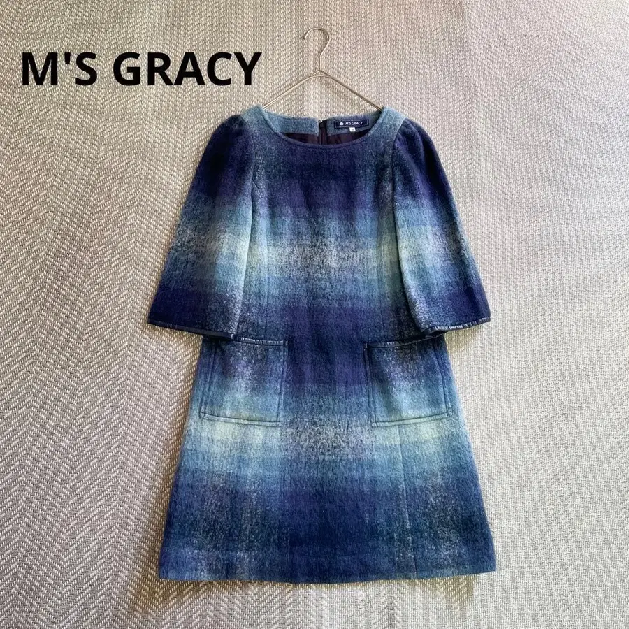 새상품급 엠즈 그레이시 샤기 울 원피스 블루 계열