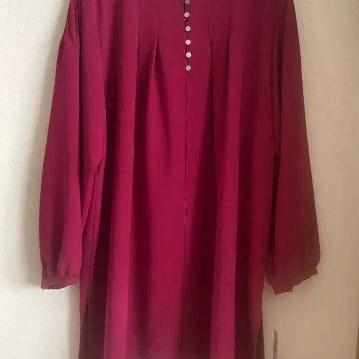 와인 레드 긴팔 셔츠 블라우스, 버튼 디자인. 빅 사이즈