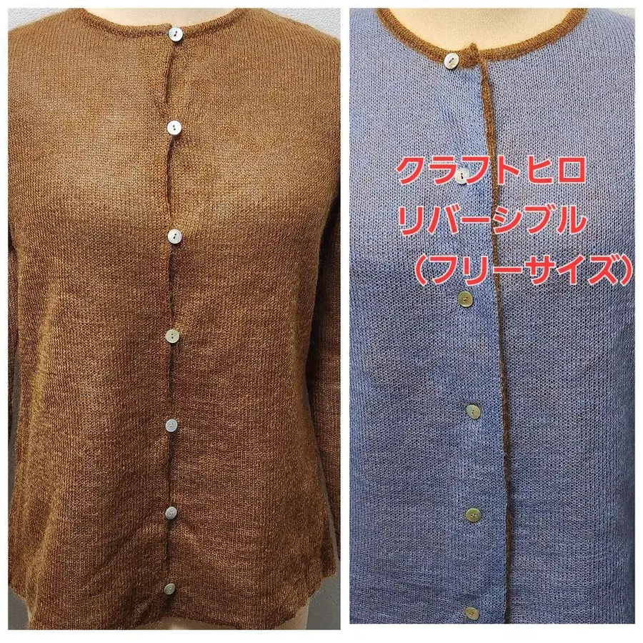 브라운과 퍼플의 리버서블 디자인, 버튼이 달린 긴팔 가디건. 방문해 주셔서 감사합니다. 백화점에서 구매한 크라프트 히로의 리버서블 니트 가디건, 프리 사이즈, 미착용 보관품입니다. 리버서블이라 택은 달려 있지 않습니다. 따로 있었던 것 같은데 현재는 분실했습니다. - 브랜드: 크라프트 히로 - 사이즈: 프리 사이즈 - 색상: 브라운 계열, 퍼플 계열 - 디자인: 리버서블, 버튼 포함, 뒷면 밑단에 슬릿이 있습니다. 방문해 주셔서 감사합니다. 옷장 정리를 위해 판매합니다. 마음에 들지만, 최근에는 낮에만 외출하기 때문에 스웨터를 거의 입지 않게 되었습니다. 마음에 들어 하시는 분께 양도합니다. 기록은 없지만, 구매 시 가격은 20,000엔 정도라고 생각합니다. 사이즈 (평평하게 놓음, 개인 측정) 가슴 둘레: 50cm 기장: 등 중심에서 밑단까지 60cm 얼룩, 찢김, 냄새 등 - 없음 다른 하나, 크라프트 히로의 가디건을 판매 중입니다. 함께 봐주세요. 참고로, 발송은 1월 5일 이후가 됩니다.