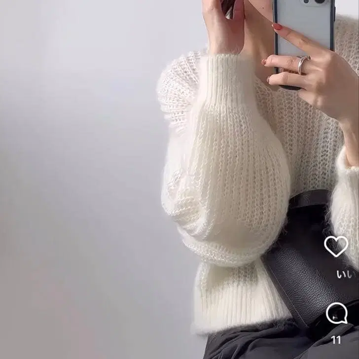 [ 새상품급 ] plage 화이트 V넥 모헤어 니트 스웨터