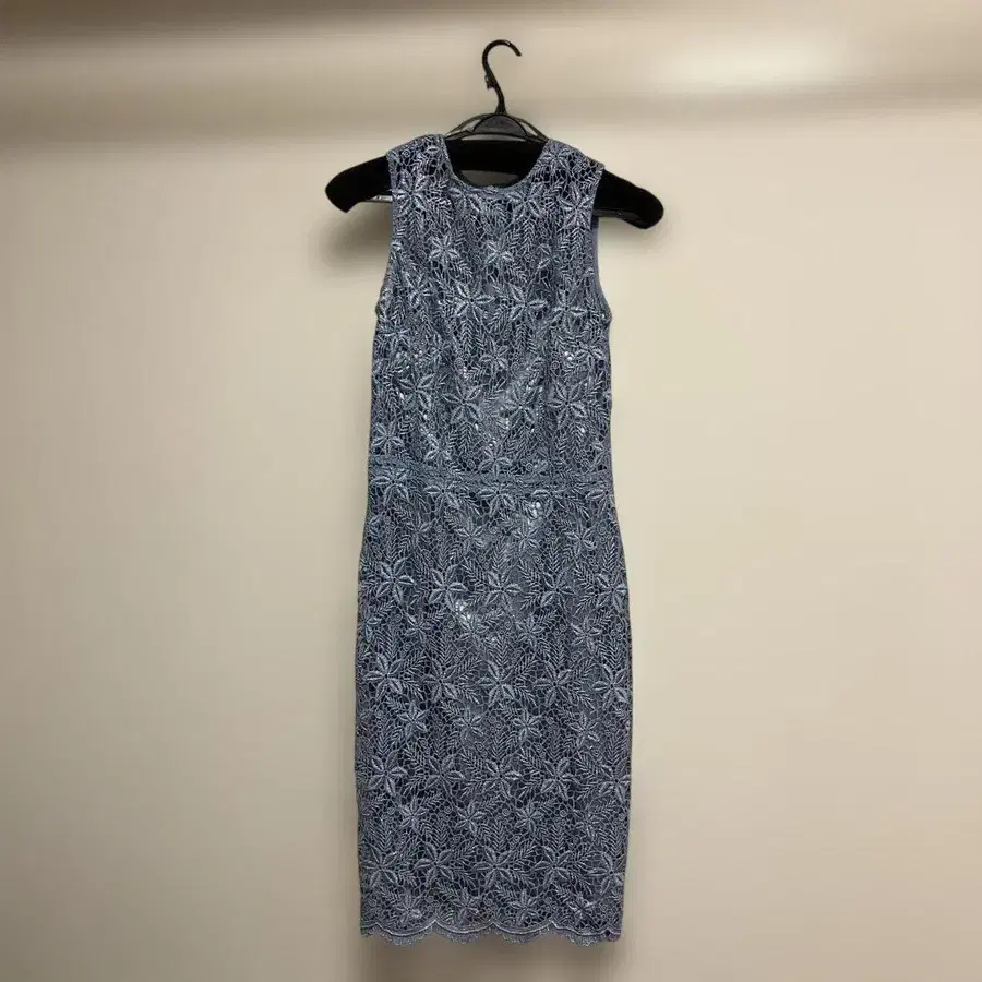 블루 레이스 슬리브리스 무릎 기장 원피스