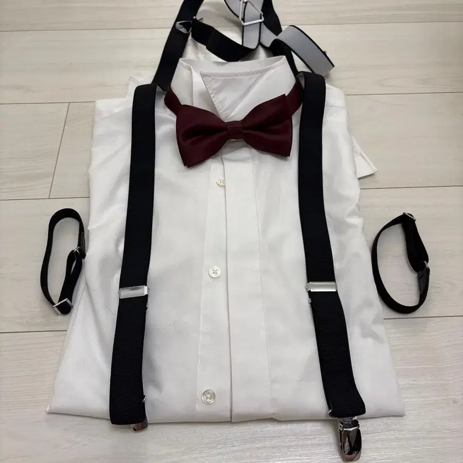 턱시도용 화이트 셔츠와 서스펜더와 보타이 세트