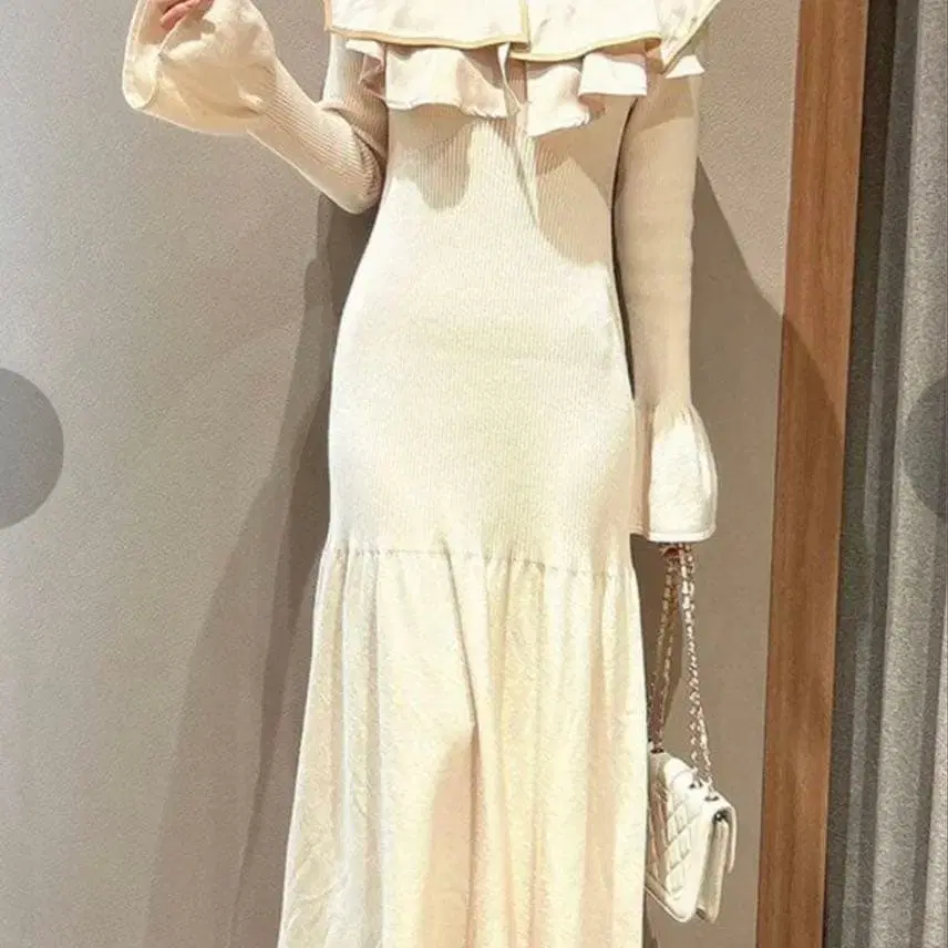트렌디한 빅 칼라가 포인트인 성숙 큐트 니트 원피스 ♡
