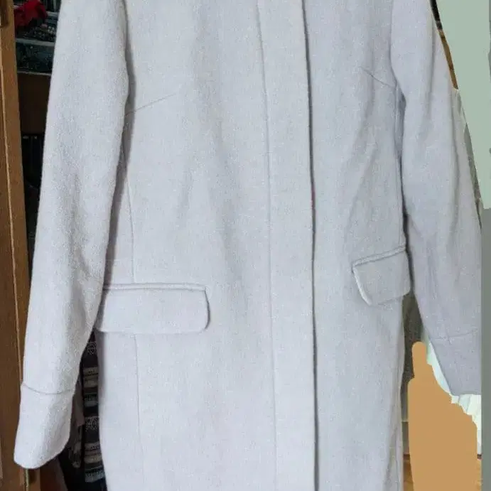 겨울에는 어두운 색상이 많아 칙칙해지기 쉬운데, 파스텔 색상으로 기분 전환을 해보세요. 원래 달려 있던 복슬복슬한 옷깃은 처분했기 때문에 코트만 있습니다.