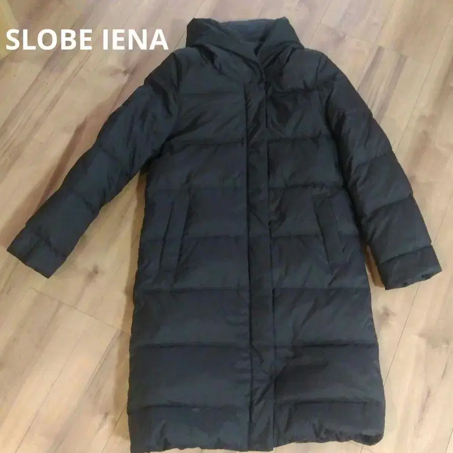 SLOBE 이에나 블랙 후드 부착 롱 다운 자켓
