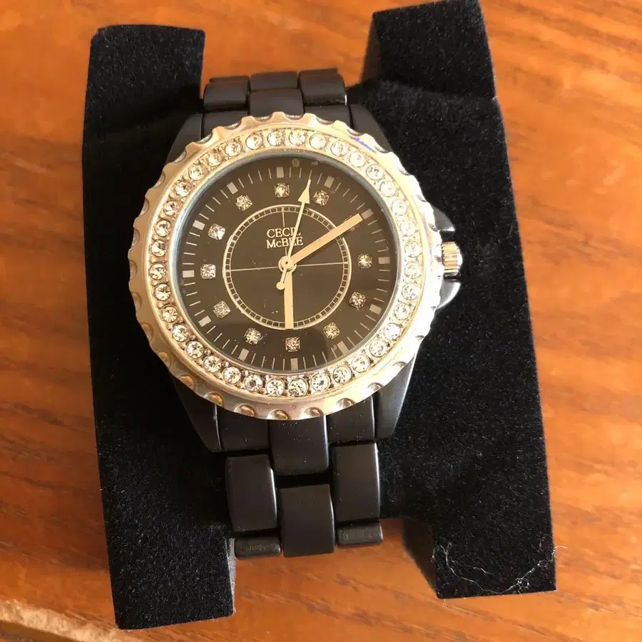 CECIL McBEE 스톤 장식 블랙 시계