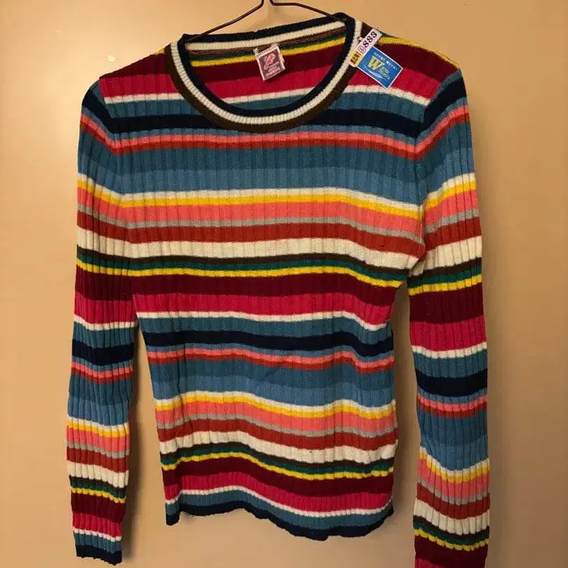 빈티지 멀티 컬러 스트라이프 긴팔 스웨터