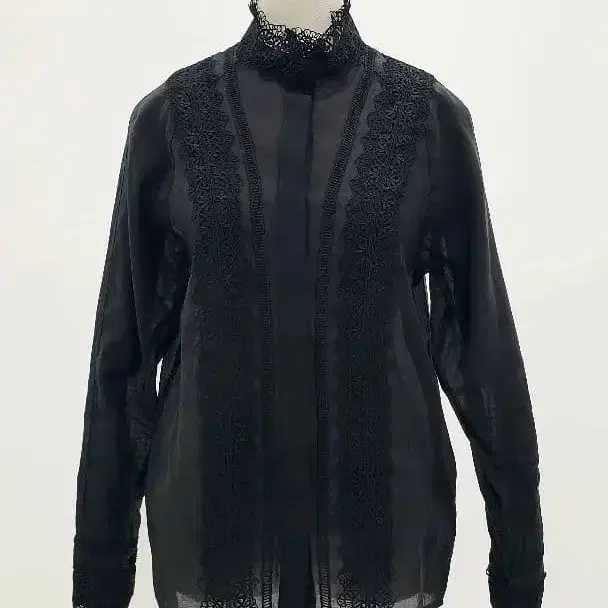 오간자 레이스 장식이 더해진 블랙 긴팔 셔츠입니다.