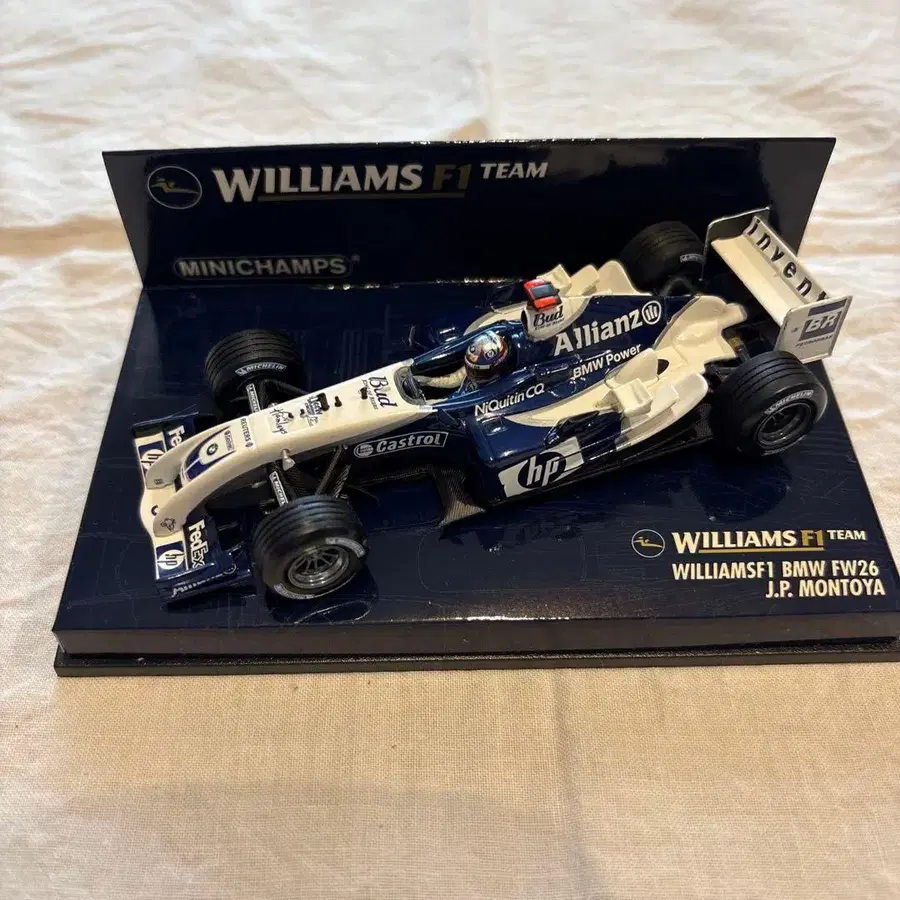 WILLIAMS F1 TEAM의 BMW FW26, J.P. MONTOYA 드라이버 사양의 1/43 스케일 미니카.