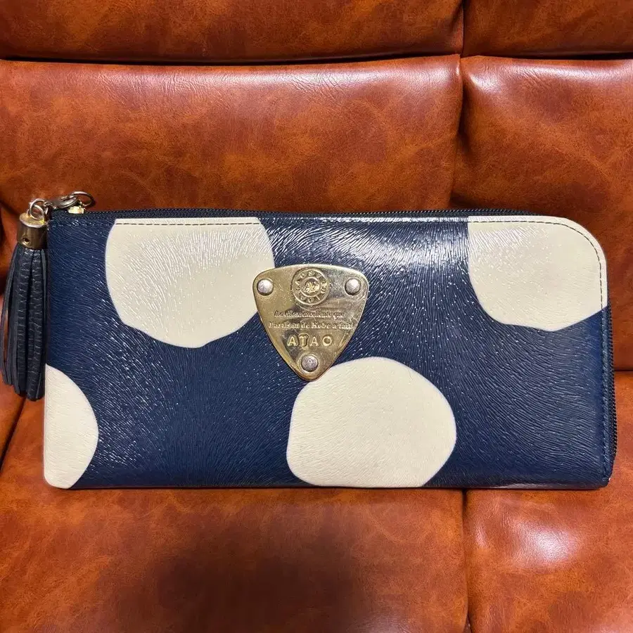 ATAO 도트 무늬 장지갑 네이비/베이지