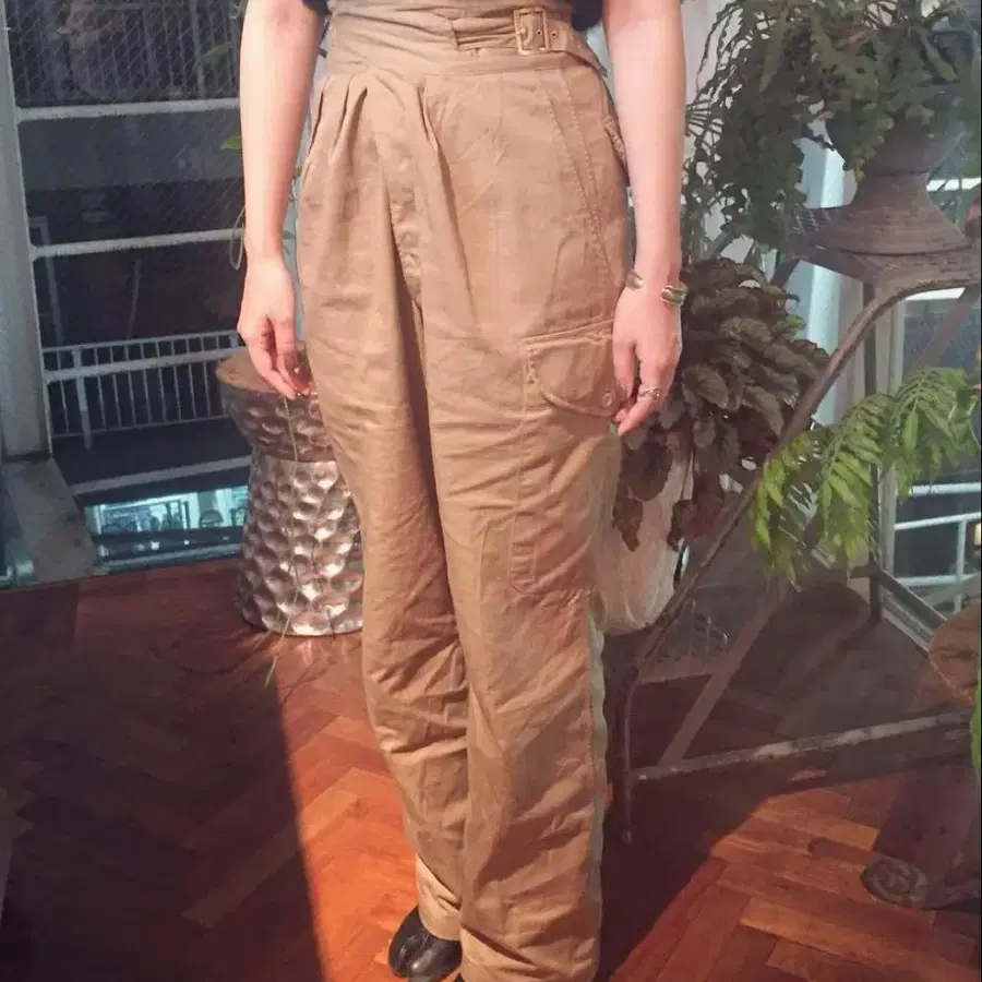 하이웨스트 디자인의 베이지색 구르카 팬츠입니다.