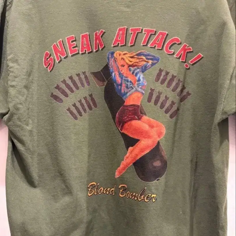 핀업걸 밀리터리 양면 프린트 반팔 T셔츠 그린 올리브