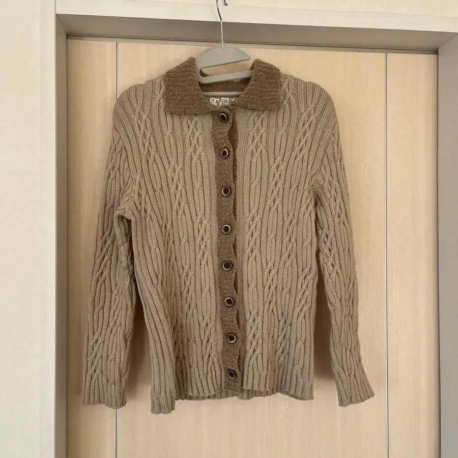 케이블 짜임 니트 가디건 베이지 EU42 프랑스 빈티지