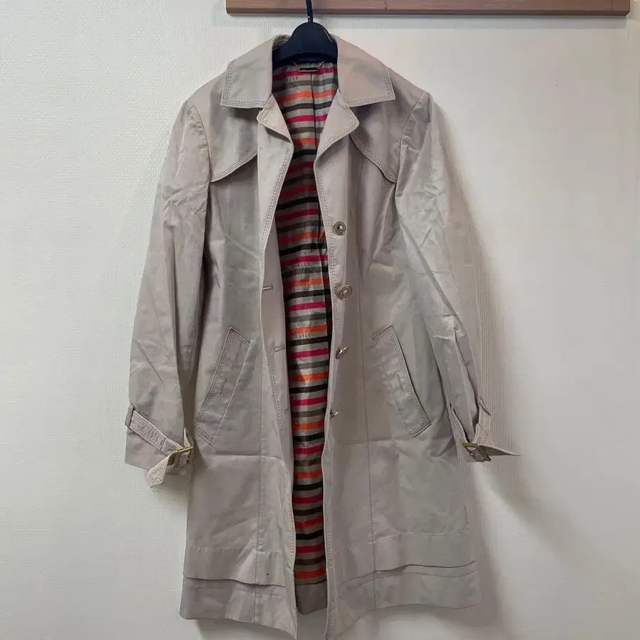 ELLE 베이지 트렌치코트 스트라이프 안감