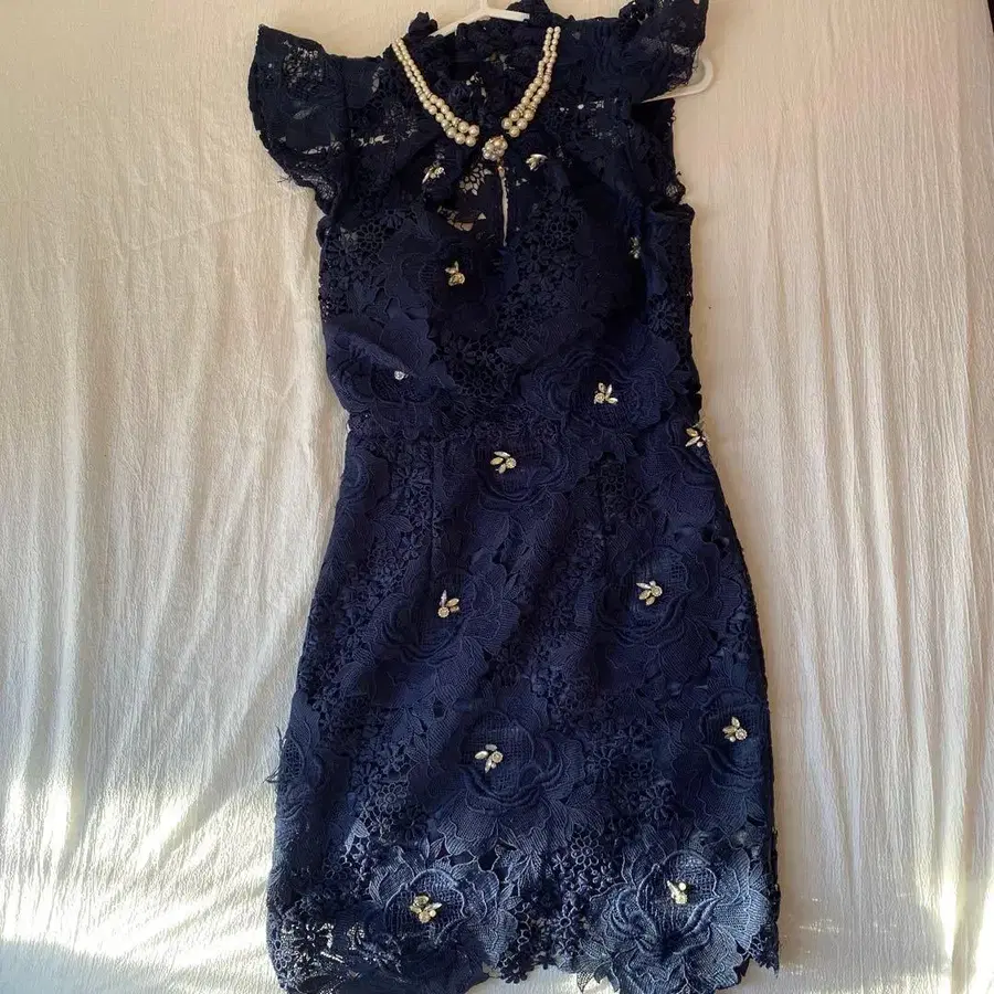 롤드풀르 캬바쿠라 드레스 네이비 레이스 드레스 프릴 소매