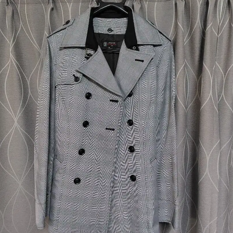 그레이 더블 브레스트 트렌치코트