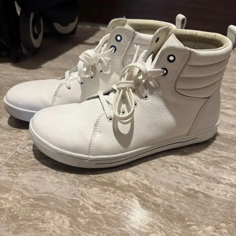 버켄스탁 화이트 가죽 하이컷 스니커즈