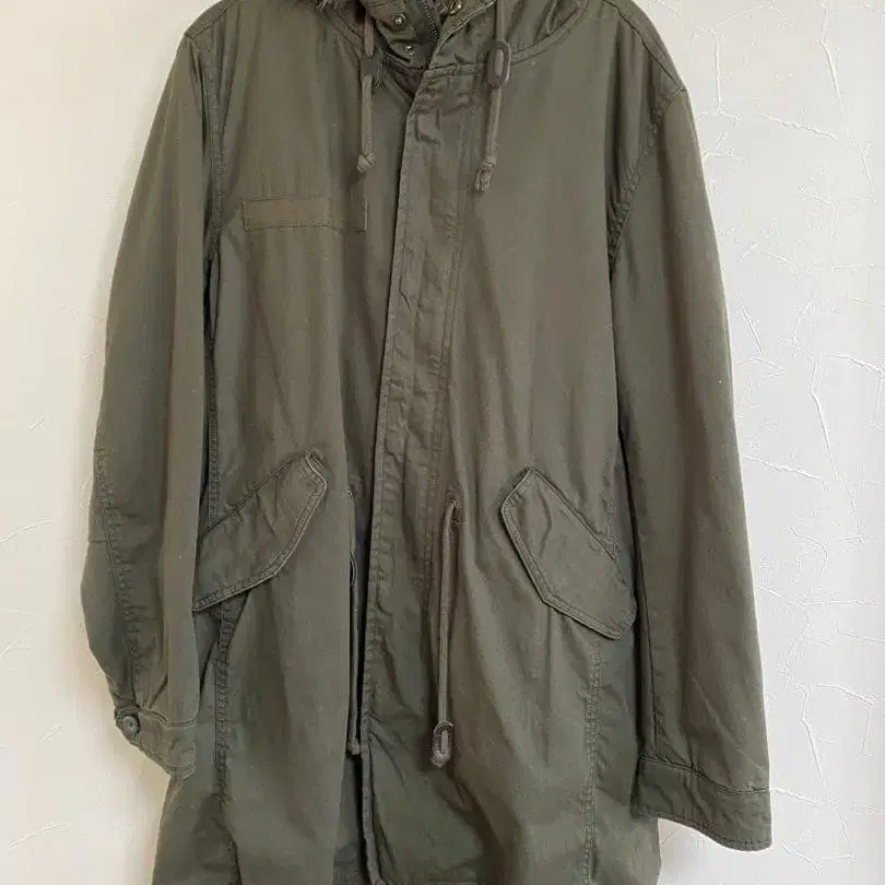 [ 미사용 ] GU 올리브 그린 후드 부착 모즈 코트